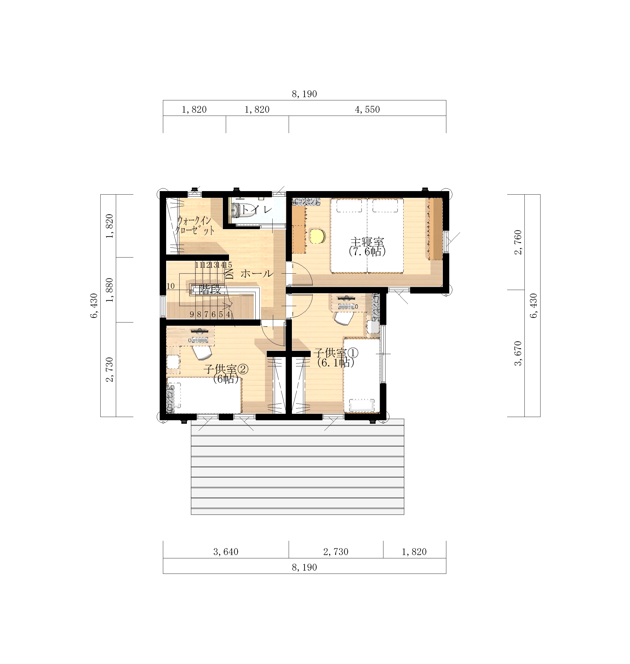 ●2階面積:45.98㎡(13.90坪)