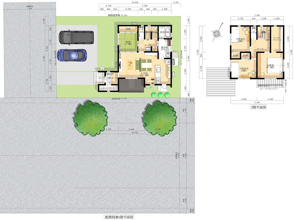 敷地面積:195.06㎡(59.00坪)/床面積1階:62.59㎡(18.93坪)/床面積2階:53.43㎡(16.16坪)