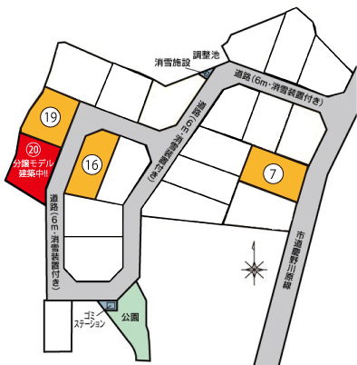 残3区画 !坪単価8.8万円より、 20号地‥新築分譲モデル建築中!! 分譲地内、融雪完備!角地有! 住吉保育園(にじいろこども園)まで約220m! 星の杜小迄約850m!